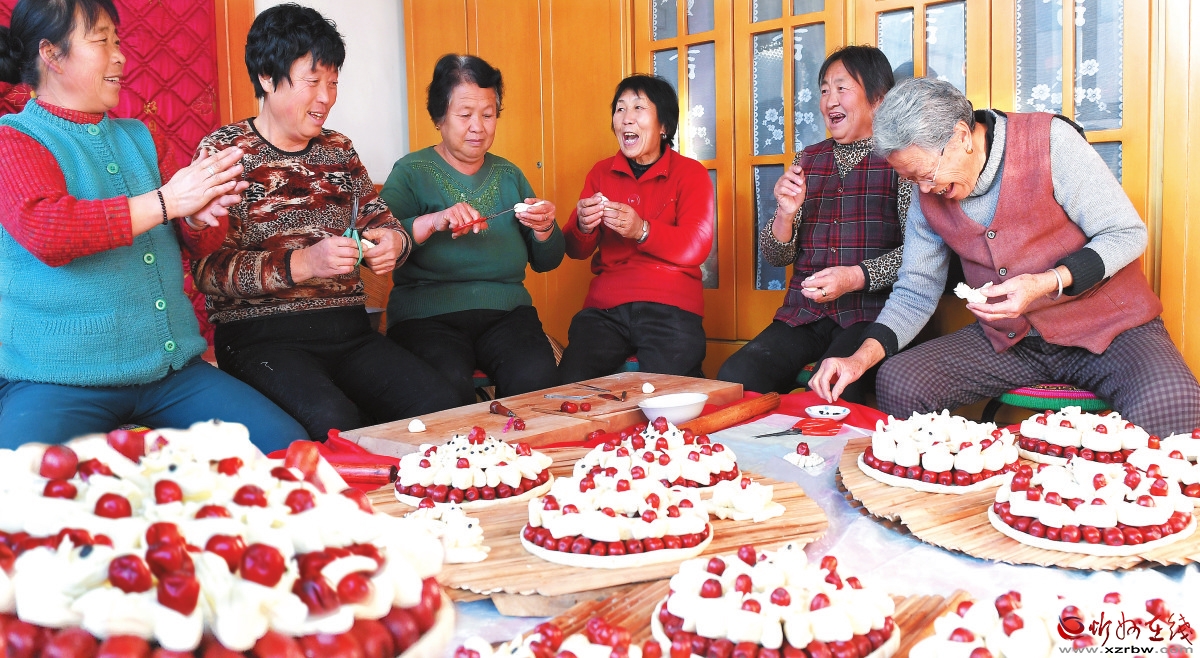 開開心心蒸花糕。 張晉蘭攝 年節(jié)美食蘊年味 “臘八節(jié)”拉開了過年的序幕,臘月二十三,又稱“小年”。臨近年根,置辦年貨、洗洗涮涮,人們掃家除塵盡可能提早在臘月二十三前完成。為了飽享年節(jié)的輕松美好,在忻州民間有正月里不蒸灶的說法,人們要將年后一整個正月內(nèi)的所有主食集中在臘月加工制熟。過去,由于忻州小麥種植有限,唯獨過年才有口福享受幾頓白面食品,所以面食蒸灶是一件必不可少的事情。饃饃、花糕、棗山、錢龍,有女兒的還要有毛籃兒。上午蒸灶,下午搟豆面,這似乎也成為一種慣例。捏過花糕棗山的大面案依然還在炕邊擺著,把豆面和成硬硬的,搟得薄如紙張,折成幾折,切成一指寬左右的寬條,這是專為大年初一中午準備的“寬心面”。 黃米糕是忻州一帶盛行的一種美食,它以黍子(軟糜子)為原料,經(jīng)碾壓成為糕面。由于忻州油料作物有限,不便油炸,只能撩少許油在鍋里擦糕,俗稱“撥糕”,外焦里嫩,色澤十分好看,擦出后沓在瓷盔或小甕中保存。糕是粗糧中最為高檔的自制食品,是年節(jié)必備的主食,吃糕有高升的意思。 撥完糕后,人們還要“吊煎鍋”。“煎鍋”形如煎餅,以高粱面加少許榆(樹)皮面為原料,攪成糊狀后轉(zhuǎn)鍋邊流下,用鏟子輕輕攤開,蓋上鍋撇子(高粱秸稈經(jīng)碾壓去瓤后編織而成的鍋蓋墊),幾分鐘后揭出,折幾折切成一指寬的長條,待正月里調(diào)上酸窩白菜(腌白菜)或燴菜食用,這也是一道粗糧細作的預制主食。 “攤糊兒”也是忻州民間必不可少的美食。早年間農(nóng)家取暖多用泥制火爐,攤糊兒時往往會多擺幾個火爐子,也有在院中專門盤一個多火口的攤糊兒爐臺,分別在爐口擱上幾個生鐵鑄造的“糊兒鏊子”攤糊兒?!昂齼骸钡脑弦杂裁用鏋橹?,也有用高粱面攤的?!昂齼骸边吅裥谋?,直徑約五六寸左右,出鏊后趁熱對折,擱在條盤或笸籮中儲存,攤糊兒微甜略帶酸味,也是年后別具風味的一種主食。 除此預制主食外,還要提前加工一些燒肉、煎肉、豆腐、粉絲、粉條等副食,以備正月里食用。 正月里準備好這些美食,便可以盡情享受年節(jié)的輕松自在,體會一年辛勤換來的幸福美好。