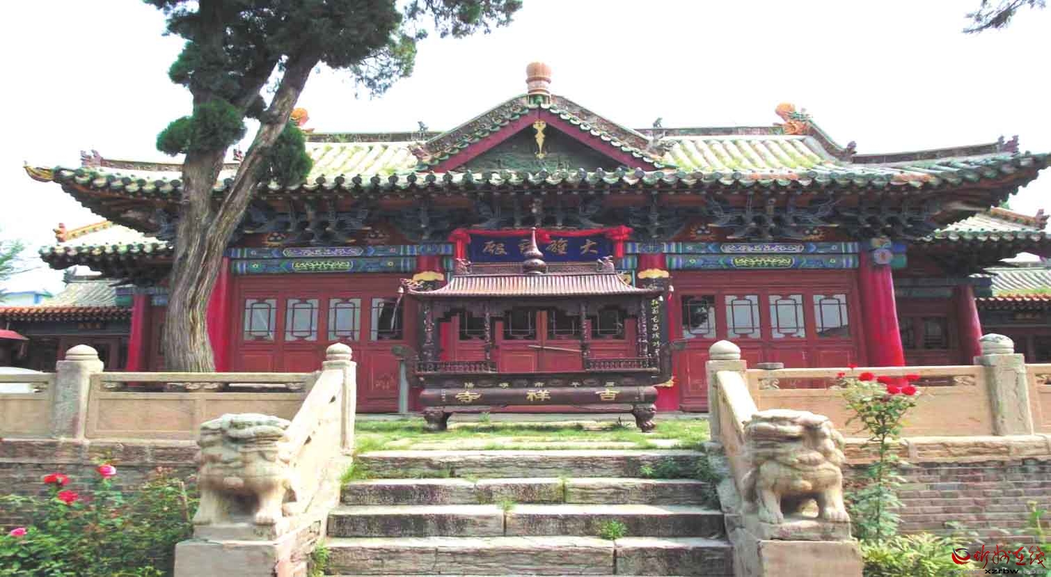 泰山廟位于原平市崞陽鎮(zhèn)平定街村。據(jù)清《崞縣志》記載,創(chuàng)建于元至治三年(1323)。明、清均有修葺。坐北朝南,東西長31.8米,南北寬52.3米,占地面積約1663平方米。中軸線僅存正殿,兩側(cè)為東西配殿及耳房。正殿及東西配殿為明代遺構(gòu),余為清代遺存。正殿石砌臺基,前設(shè)月臺,上置勾欄、望柱,面寬五間,進(jìn)深五椽,單檐懸山頂,六檁前廊式構(gòu)架,斗拱五踩,單翹單昂,裝修原制不存。正殿前建有抱廈三間,單檐歇山頂?,F(xiàn)新塑像23尊。