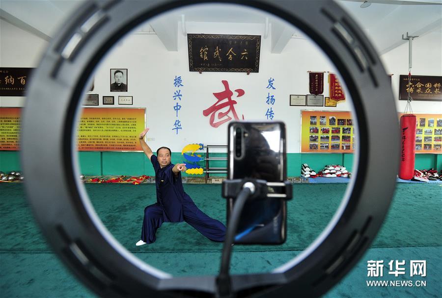 8月5日,石同鼎直播六合拳拳法。時(shí)值暑假,為減少聚集習(xí)武帶來的疫情風(fēng)險(xiǎn),同時(shí)豐富孩子們的暑期生活,六合拳第八代傳承人石同鼎在直播平臺開通了賬號,每天帶領(lǐng)學(xué)生進(jìn)行網(wǎng)絡(luò)直播教學(xué)演示,通過“云端”傳承非遺文化。 今年59歲的石同鼎是泊頭六合拳第八代傳人,他自幼跟隨父親習(xí)武。2001年父親離世后,石同鼎便承擔(dān)起傳承六合拳的重任。2002年石同鼎建起六合武館,開始教徒弟習(xí)武練拳。 作為傳統(tǒng)武術(shù)中長拳的一種,河北的泊頭六合拳有400余年歷史,被列入國家級非物質(zhì)文化遺產(chǎn)名錄。 “通過網(wǎng)上直播,更多的人可以了解六合拳、練習(xí)六合拳?!笔φf,他希望能把六合拳推向世界,傳得更遠(yuǎn)。新華社記者 牟宇 攝