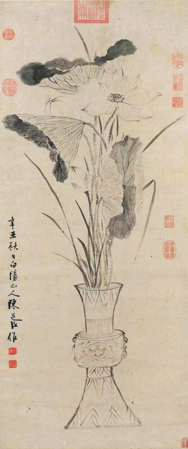 中國插花藝術歷史悠久,其中文人插花以其獨特的藝術面貌與審美趣味,成為傳統(tǒng)插花的典型代表。文人插花始于五代,興于宋元,于明代發(fā)展至高峰。萬歷年間,文人雅士熱衷于插花活動,出現(xiàn)了《瓶史》《瓶花譜》等理論典籍,與明代畫家陳淳、沈周、唐寅、仇英、陳洪綬等人的相關創(chuàng)作相互呼應,確立了文人插花的審美范式。