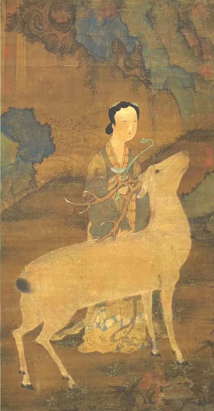 在傳統(tǒng)文化中,鹿是一種有神力的動物,神話傳說中鹿往往是神仙的坐騎。李白一生尋仙問道,其《夢游天姥吟留別》中有“且放白鹿青崖間,須行即騎訪名山”之名句。南極仙翁的白鹿,不僅被繪制在壽畫里,在文學(xué)中也大放異彩。《西游記》中的白鹿精就是壽星南極仙翁的坐騎,偷得壽星的蟠龍拐杖后下凡為妖。在《白蛇傳》里,白娘子獨闖昆侖山,欲盜取起死回生的靈芝仙草,遭遇鶴、鹿二仙童阻攔。清代神魔小說《女仙外史》中的鹿童化為道人,下凡后為禍人間。屢破票房紀錄的動畫電影《哪吒2》,其中的反派之一鹿童,是無量仙翁的大弟子,擔任捕妖隊頭領(lǐng),戲份頗重。