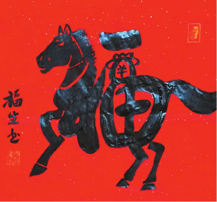 馬上福 王福生 作 書(shū)者,心之跡也。在中國(guó)書(shū)法藝術(shù)的星河里,“?!弊质冀K是最具生命力、最具親和力的文化符號(hào)。當(dāng)代書(shū)壇,忻州名家王福生,以半生閱歷為基,以筆墨情懷為魂,將從政之德、處世之懷、從藝之癡熔于一爐,以“?!弊譃楹诵膭?chuàng)作載體,為這一古老文化符號(hào)注入了獨(dú)屬于時(shí)代的風(fēng)骨、力量與溫度。 根脈筑基:人生修為鑄就福字創(chuàng)作底色 王福生福字書(shū)法之根,深植于三晉厚土;福韻之魂,源自于家國(guó)情懷與半生修為。他數(shù)十年公仆生涯,守正持心,務(wù)實(shí)篤行?!盀楣僖蝗?、造福一方”的初心使命,化作了筆墨里的端正、沉穩(wěn)、坦蕩與擔(dān)當(dāng),讓筆下之福,無(wú)纖巧浮滑之氣,有正大光明之質(zhì)。 他性情爽直,心胸如海,平生雅好文藝,尤嗜福字書(shū)法,數(shù)十年臨池不輟,筆耕不止。其藝術(shù)之路師承有序,得鮑其偉先生親傳,又受多位書(shū)畫(huà)名家面授指點(diǎn),博采眾長(zhǎng),兼收并蓄,終在福字創(chuàng)作上自成一格。其福字線條如斧劈刀削,結(jié)體寬博沉雄,既是三晉山川風(fēng)骨的投射,亦是半生人生閱歷的精神映像。 得意忘“形”:王福生創(chuàng)意福字的道家意蘊(yùn)與藝術(shù)獨(dú)創(chuàng) 王福生的福字創(chuàng)作,深得“得意忘言”的道家美學(xué)精髓——不拘泥于福字字形刻板,而以意馭筆,以情入墨,形隨情變,福由心生。他以“融形會(huì)意”為核心,跳出傳統(tǒng)福字單字書(shū)寫(xiě)的桎梏,以合體字、意象字為載體,將漢字構(gòu)形、民俗意象、親情溫度與筆墨韻味融為一體,形成其“字中有畫(huà)、畫(huà)中藏字、字福相生”的獨(dú)特福字藝術(shù)語(yǔ)言。 親情融形福:相濡以沫的人間至福 在王福生的創(chuàng)意福字中,以親情為主題的福作最具溫度、最動(dòng)人心。他巧構(gòu)福字形體,暗合字理,以一筆一畫(huà),將人間相守之福凝于一字。一幅紅底灑金福字,左部“礻”化作老翁剪影,蒼勁挺拔;右部“畐”勾勒老嫗形態(tài),溫婉相依。二老相視而近,低語(yǔ)相守,下方“田”化為安身立命的家園,寥寥數(shù)筆,將夫妻相伴、相濡以沫的人間至情,凝于一個(gè)字中。在他的筆下,不僅僅是哲學(xué)之語(yǔ),更是可感、可見(jiàn)、可入心的人間真福。 生肖會(huì)意福:與時(shí)俱化的自然福道 生肖文化,是中華民俗之根脈,王福生緊扣福字主題,應(yīng)時(shí)而作,應(yīng)物而書(shū),將十二生肖意象與福字完美融合,創(chuàng)作出獨(dú)具氣象的“生肖?!毕盗?,合于《道德經(jīng)》“動(dòng)善時(shí)”的智慧——順天時(shí),合地利,應(yīng)人心,與時(shí)俱化。其馬年“馬上福”堪稱福字神品:以草書(shū)筆勢(shì),將“福”與“馬”渾然合一,“礻”為駿馬昂首,鬃毛飛揚(yáng);“畐”為身軀矯健,奮蹄向前;“田”化為鞍飾,點(diǎn)睛傳神。整幅福作一氣呵成,筆走龍蛇,靈動(dòng)奔放,卻又穩(wěn)而不飄,勁而不躁,正是老子“知其雄,守其雌”的筆墨體現(xiàn)。 福壽合一福:返璞歸真的生命福境 “福壽雙全”,是中國(guó)人最樸素、最極致的生命祈愿。王福生承續(xù)康熙“天下第一?!敝欧?,又自出機(jī)杼,在創(chuàng)作中融入壽字意象,書(shū)成“福壽合一”的經(jīng)典福字形制。他以榜書(shū)筆意,將壽字融于福字之中,上為壽首,下為壽體,福中有壽,壽內(nèi)含福,筆畫(huà)蒼勁如古松,結(jié)體穩(wěn)如磐石,寓意福壽綿長(zhǎng)、相依相生。 技近乎道:王福生福字書(shū)法的藝術(shù)境界 王福生之福字書(shū)法,由技入道,以法度筑基,以精神升華,力量、節(jié)奏、立體三美兼具,章法、結(jié)體、神采渾然一體,臻于自然天成之境,讓福字在筆墨法度中盡顯神韻。 三美兼具:力、韻、形的福字道法自然 ——力量感:藏力于墨,剛?cè)岵?jì) 其福字書(shū)法力量,內(nèi)蘊(yùn)而不外露,深得“藏頭護(hù)尾,力在字中”之古法。福字點(diǎn)畫(huà)有往必收,有始有終,中鋒行筆,澀勁內(nèi)含,線條渾圓淳和,溫而不弱,柔中藏剛。他不刻意張揚(yáng)鋒芒,卻于溫潤(rùn)間見(jiàn)千鈞之力, ——節(jié)奏感:疾徐有致,韻律天成 書(shū)法之節(jié)奏,存于提按、快慢、輕重、粗細(xì)之間,其書(shū)寫(xiě)福字,隨心而變,應(yīng)勢(shì)而化,輕重交替,長(zhǎng)短相生,大小錯(cuò)落,形成自然流動(dòng)的韻律。寫(xiě)福之筆,時(shí)而沉穩(wěn)如磐石,盡顯福字的厚重端莊;時(shí)而靈動(dòng)如流泉,盡顯福字的靈動(dòng)灑脫;時(shí)而奔放如奔馬,盡顯福字的恢弘氣象。 ——立體感:中鋒立骨,側(cè)鋒相輔 其福字立體感,源于中鋒用筆之精妙。中鋒落紙,墨聚中心,福字線條飽滿圓實(shí),渾厚立體,如古人所言“映日視之,畫(huà)之中心,有一縷濃墨正當(dāng)其中”。同時(shí)他以側(cè)鋒為輔,互補(bǔ)相生,豐富福字層次,使筆畫(huà)如雕如塑,質(zhì)感卓然,以中鋒為一,以側(cè)鋒為用,讓福字骨力與質(zhì)感兼?zhèn)?,躍然紙上。 章法自如:平正通達(dá),福字格局天成 其福字書(shū)法章法,講究結(jié)字、行氣、通篇三位一體,平正中見(jiàn)變化,嚴(yán)謹(jǐn)中顯灑脫。單字福字,結(jié)體整齊平正,長(zhǎng)短合度,疏密均衡,端莊而不呆板;多行福書(shū),行氣上下承接,左右呼應(yīng),血脈暢通,一氣呵成;整體福字作品布