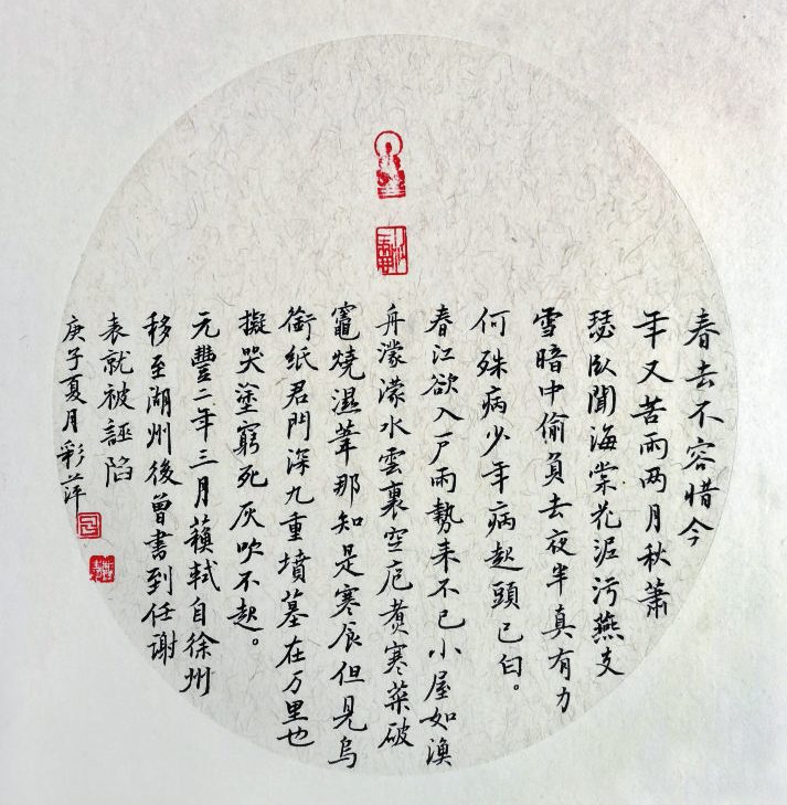 遺山詩社近期刊登的呂彩萍作品專輯,內(nèi)容上大致可分兩類:一是有關(guān)抗疫的時(shí)事情狀;二是吟詠梅蘭竹菊等花草植物以及四季更替、重要節(jié)日等,托風(fēng)雅之詞,明自我心性。從藝術(shù)角度看,這些作品或沉思、或靈動(dòng),思緒開闊,韻致嫣然,詞畫有機(jī)相融,用典自如妥切,抒情性于辭采,詠雅志而不自矜。涵詠其間,若瓊花滿地,玉階生輝,天籟清風(fēng)吹散密云,月下疏影暗吐清香。仔細(xì)品讀,可感受到作品呈現(xiàn)出的四種藝術(shù)之美,本文試作解讀。