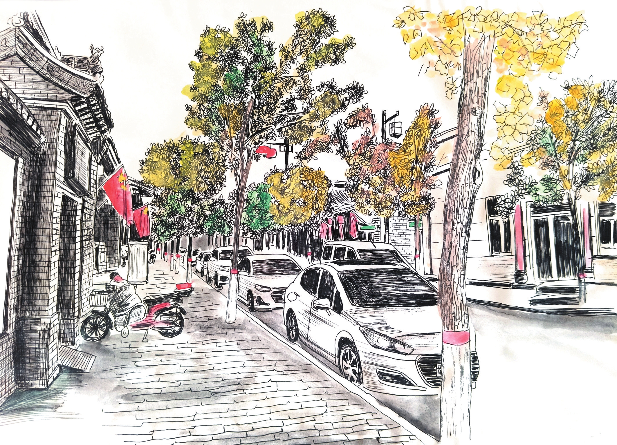作為一種獨(dú)特的藝術(shù)形式,鋼筆畫以其細(xì)膩的線條、嚴(yán)謹(jǐn)?shù)臉?gòu)圖,通過控制握筆的速度和力度,畫出不同粗細(xì)的線條,從而表現(xiàn)物象。岢嵐縣美術(shù)教育工作者侯龍飛近年來通過鋼筆畫記錄生活、表達(dá)情感,他的系列鋼筆畫《忻州古城》《岢嵐街景》等作品描繪城市變遷與時(shí)代風(fēng)貌走紅網(wǎng)絡(luò)。