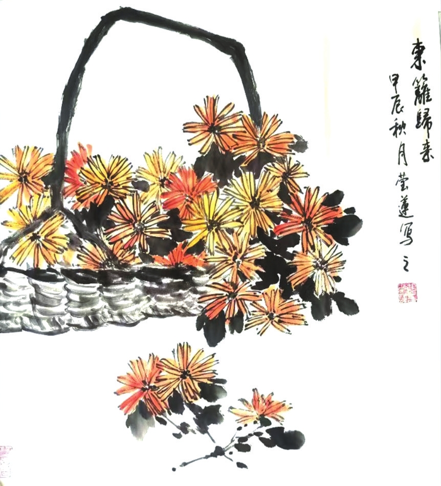 傳統(tǒng)花鳥(niǎo)素有“托物言志”之脈,從明代大寫(xiě)意花鳥(niǎo)畫(huà)代表徐渭以“墨葡萄”寄寓郁憤,到近現(xiàn)代花鳥(niǎo)畫(huà)大家齊白石以“蝦蟹”抒發(fā)閑情,題材歷來(lái)是畫(huà)家心緒的直觀映照。胡瑩蓮以吉祥意象入畫(huà),實(shí)則是將傳統(tǒng)花鳥(niǎo)美學(xué)與當(dāng)代人的情感需求深度聯(lián)結(jié),讓“氣韻”從紙墨氤氳間走出,自然融入當(dāng)代生活現(xiàn)場(chǎng)。