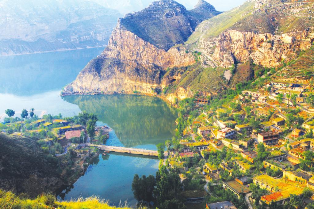 在黃河上形如半島的一個回水灣上,清清的關(guān)河水從東邊流來,匯入了黃河。對面是高山和村莊上的排排石頭窯洞,一層一層地排列在緩坡的綠蔭里。河邊有果圃,河中有捕魚船,關(guān)河上還有石拱平面橋,過得去卡車,更過得去羊馬驢騾。從山水形勢上看,這里是高崖深壘,有渡口,從大面上看是一個死角,然而又是一個興于明盛于清的重要水旱碼頭,有長城、有烽火臺和古堡??滴跛氖辏ü?701年)西北放墾,這里成為北糧進(jìn)入晉地的轉(zhuǎn)運點。北上的晉商也由此進(jìn)入黃河上游,關(guān)河口也就成了糧食、茶葉、布匹和皮毛、牲畜交流互換的水上集散地。