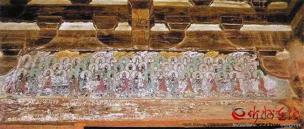 值得一提的是,栱眼壁壁畫與佛壇上的塑像、殿外的經幢,形成了清晰的對應關系,說明整個佛殿在千年之前建造時即有統(tǒng)一的規(guī)劃和設計。