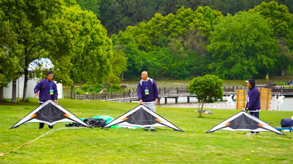 4月24日,運(yùn)動(dòng)風(fēng)箏參賽選手正在做賽前準(zhǔn)備。新華社記者龔聯(lián)康攝