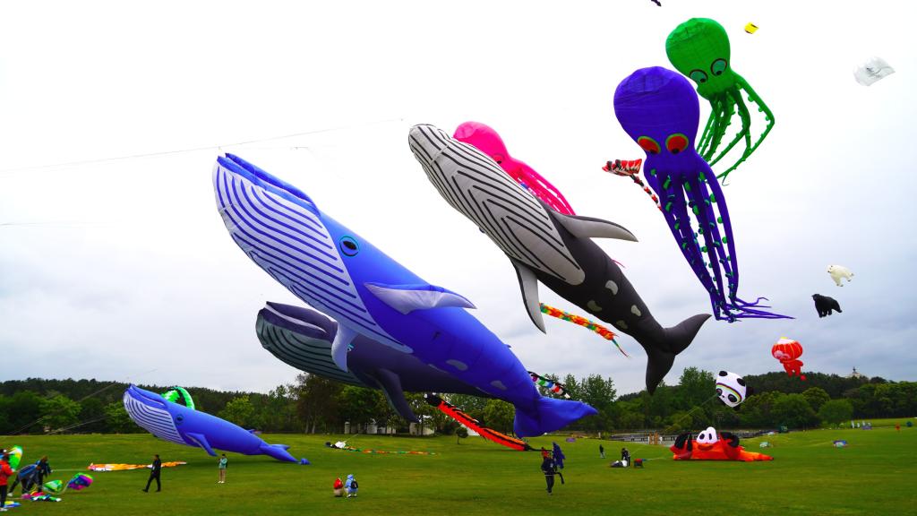本次風(fēng)箏節(jié)上,大蜈蚣、大章魚等各式各樣造型的軟體風(fēng)箏在木蘭草原天空中隨風(fēng)游動(dòng),上演“天空動(dòng)物園”,場(chǎng)面蔚為壯觀。其中,長(zhǎng)度超過40米的巨型鯨魚風(fēng)箏受到了眾多游客的熱捧。