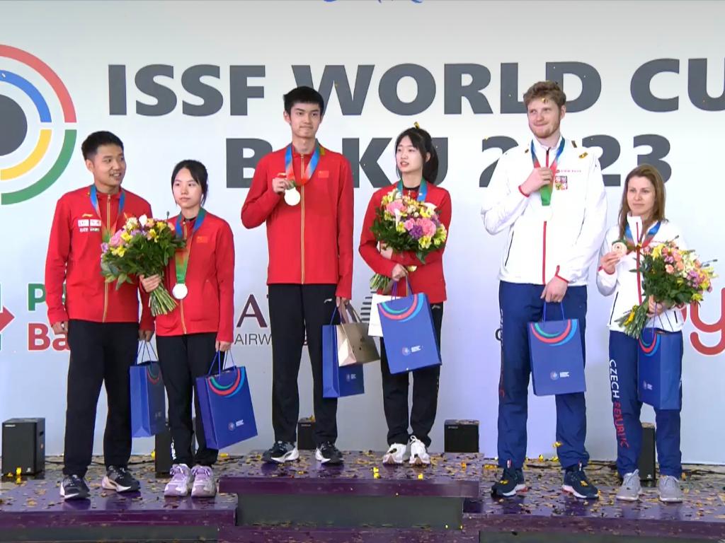 新華社北京5月11日電 據(jù)國際射擊運動聯(lián)合會官網(wǎng)11日消息,在步手槍射擊世界杯巴庫站第二個比賽日的爭奪中,兩對中國組合黃雨婷/盛李豪和王芝琳/楊皓然包攬10米氣步槍混合團體的金牌和銀牌。