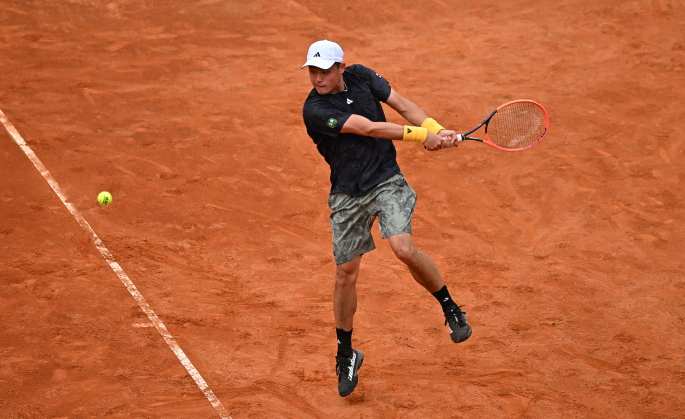 5月23日,吳易昺在比賽中回球。圖片來自ATP官方社交媒體賬號(hào)