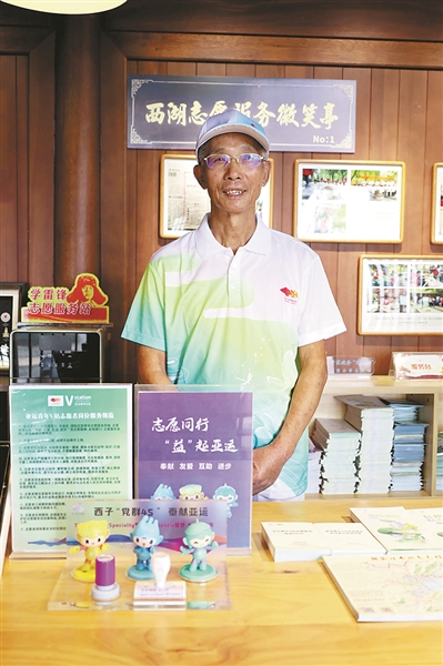“不培訓(xùn)不上崗,不合格不上崗”,這是亞運城市志愿者上崗的“硬要求”,也是景區(qū)志愿者做好服務(wù)的“金名片”。年過七旬的志愿者施志平,已經(jīng)連續(xù)在西湖邊服務(wù)了11個年頭?!白罱南词珠g怎么走”“音樂噴泉在哪里看”“西湖游船哪里可以坐”,這些問題他一天不知要回答多少遍,“馬上開亞運會了,會有更多人來到杭州、來到西湖,我也希望能夠為杭州多做些貢獻(xiàn)?!笔┲酒秸f,“最近我們也從年輕人身上學(xué)到了很多技能,尤其是英語,希望到時候能為大家提供更周到的服務(wù)。”