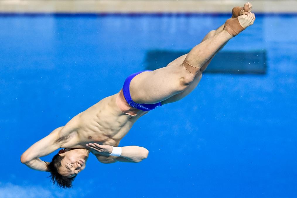 11月22日,湖北浩沙隊(duì)選手王宗源在男子3米跳板比賽中。新華社記者伍志尊攝