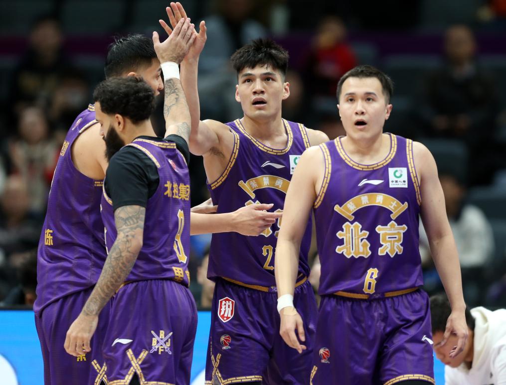 12月27日,北控隊球員陳國豪(右二)進(jìn)球后和隊友慶祝。新華社記者 雒圓 攝