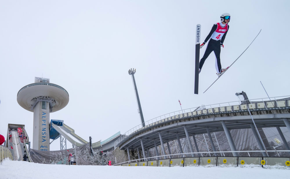 1月21日,跳臺(tái)滑雪混合團(tuán)體賽決賽中,中國組合任浩然、鄭鵬博、翁楊寧和唐嘉鴻以543.2分的成績獲得第十二名,圖為任浩然在比賽中。新華社記者 張笑宇 攝