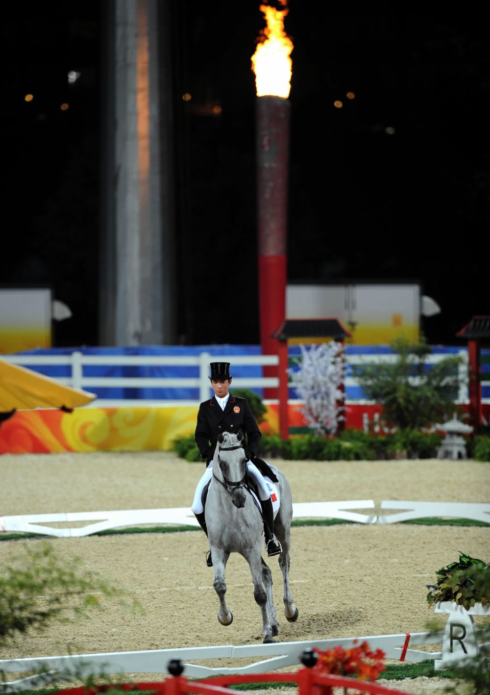 2008年8月9日,中國騎手華天在比賽中。當(dāng)日,中國騎手華天在香港參加北京奧運會馬術(shù)比賽三項賽盛裝舞步賽,這是中國運動員首次亮相奧運馬術(shù)比賽場。新華社記者 盧炳輝 攝
