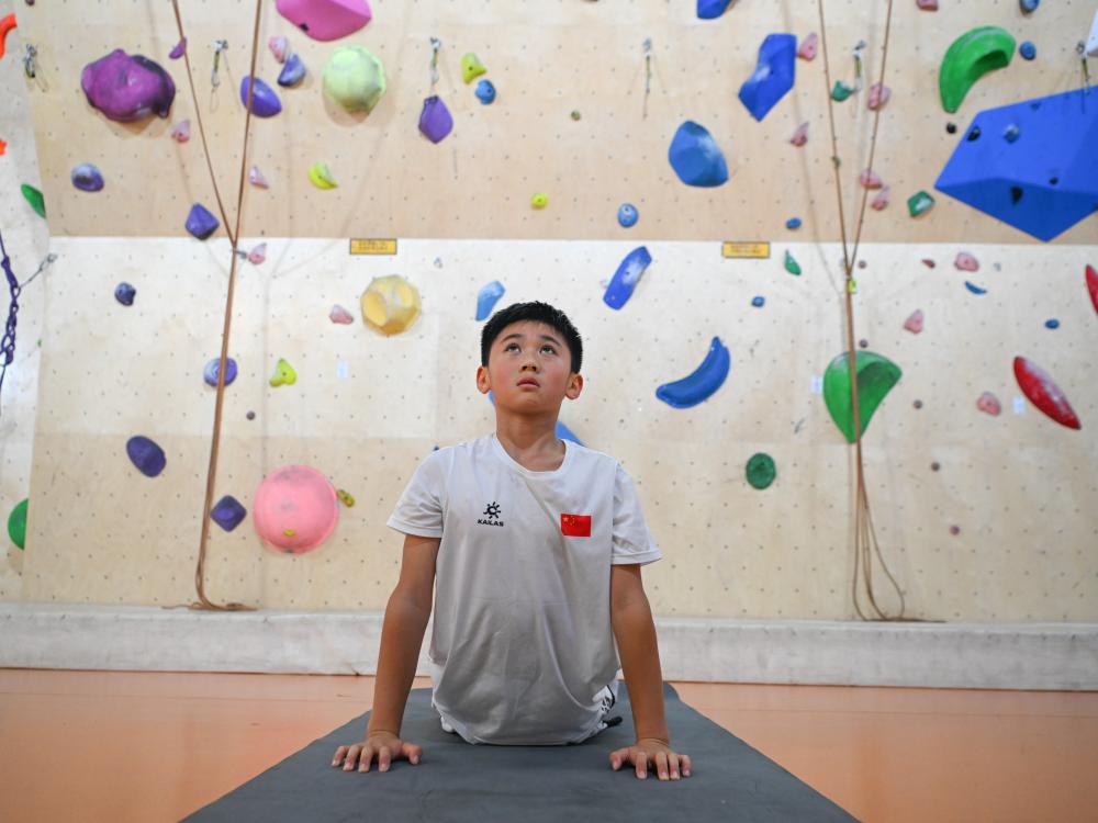 7月16日,方先旻在訓練攀巖。新華社記者 王曦 攝