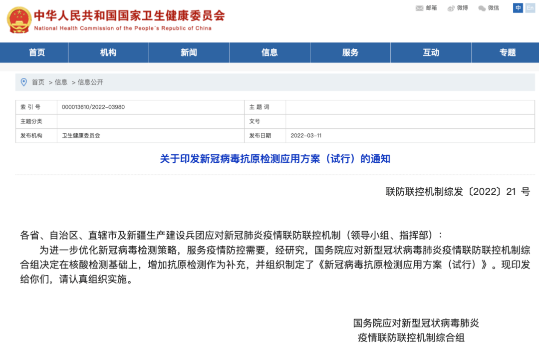 通知指出,為進一步優(yōu)化新冠病毒檢測策略,服務疫情防控需要,經研究,國務院應對新型冠狀病毒肺炎疫情聯(lián)防聯(lián)控機制綜合組決定在核酸檢測基礎上,增加抗原檢測作為補充。