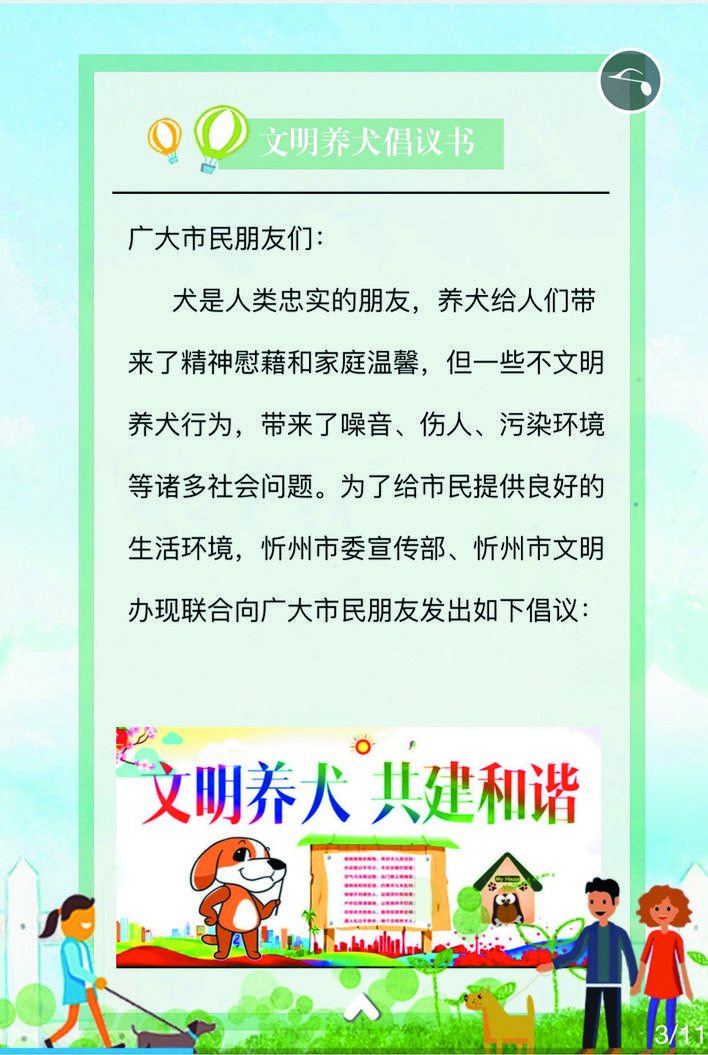 文明養(yǎng)犬,從我做起。讓我們共同努力,心往一處想、勁往一處使,為忻州這座千年之城戴上熠熠閃光的文明桂冠。(魯明強(qiáng) 常曉蓉)