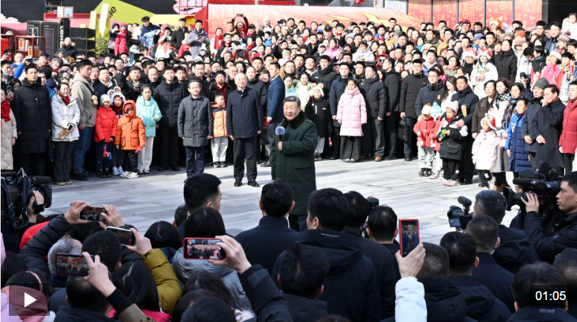 中華民族傳統(tǒng)節(jié)日春節(jié)即將到來(lái)之際,中共中央總書記、國(guó)家主席、中央軍委主席習(xí)近平在北京考察并看望慰問(wèn)基層干部群眾,向全國(guó)各族人民和香港同胞、澳門同胞、臺(tái)灣同胞、海外僑胞拜年!