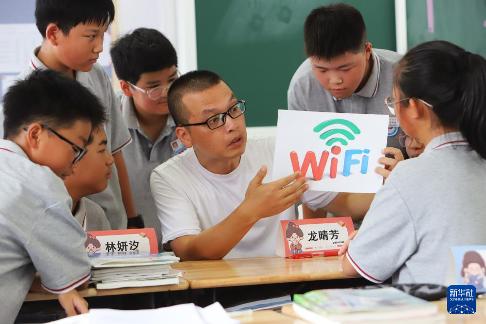 9月11日,浙江省臺州市路橋區(qū)蓬街中學老師為學生講解網(wǎng)絡(luò)安全知識。(新華社發(fā) 蔣友青 攝)