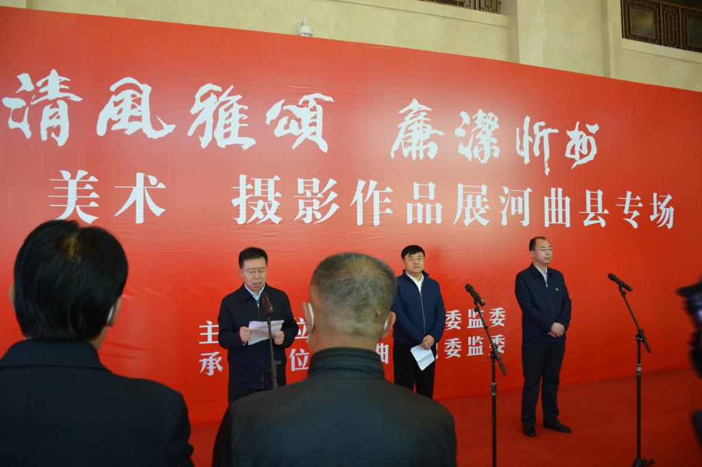 翰墨丹青揚(yáng)正氣,清風(fēng)廉韻沁民心。11月10日,由忻州市紀(jì)委監(jiān)委主辦,河曲縣紀(jì)委監(jiān)委承辦的“清風(fēng)雅頌·廉潔忻州”書畫美術(shù)攝影展河曲縣專場(chǎng),在臨隩公園美術(shù)館開(kāi)展。市政協(xié)副主席、縣委書記邊東圣出席儀式并作重要講話,縣委副書記、縣長(zhǎng)任鴻賓宣布“清風(fēng)雅頌·廉潔忻州”書法美術(shù)攝影展開(kāi)展,縣委常委、縣紀(jì)委書記、縣監(jiān)委主任張永明主持開(kāi)展儀式??h四大班子領(lǐng)導(dǎo)和其他縣處級(jí)領(lǐng)導(dǎo),全縣各鄉(xiāng)鎮(zhèn)、居民辦、黨群、政府、發(fā)改、農(nóng)口、政法、宣傳文衛(wèi)各口黨員干部及全體紀(jì)檢監(jiān)察干部共計(jì)180余人參加了開(kāi)展儀式。