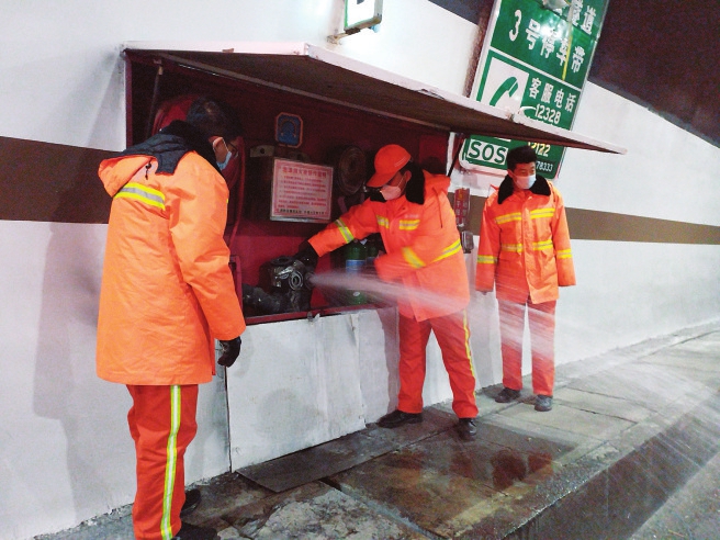朔州高速公路管理有限公司工作人員正在檢修隧道路燈等設備。本報記者馬占富攝