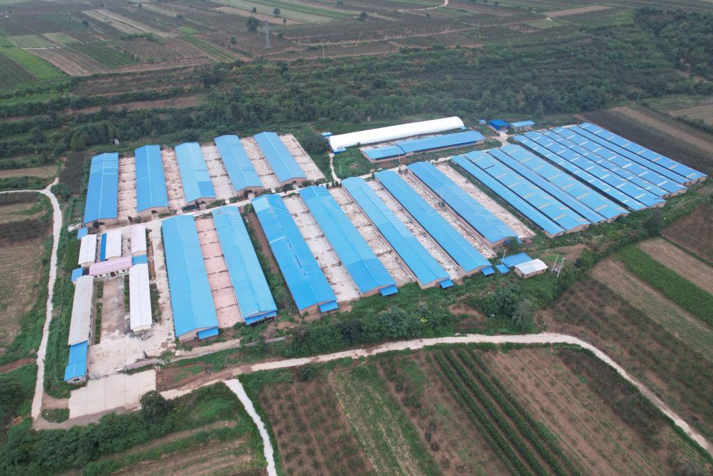 陜西省潼關(guān)縣歐家城村占地120畝的肉鴨養(yǎng)殖場(chǎng)航拍照片。(受訪(fǎng)者供圖)