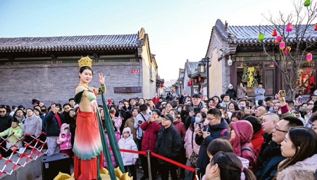 “在大同古城鬧紅火,真是年味兒十足、體驗(yàn)感拉滿。”來自太原的游客張文文開心地說。春節(jié)假期,大同市文化活動(dòng)豐富多彩,以大同古城為中心,市縣(區(qū))聯(lián)動(dòng)開展的“流光溢彩迎新年”“歡歌樂舞過大年”“梨園百花賀新年”“夢幻冰雪逐夢年”“翰墨書香文化年”“古都風(fēng)華盛世年”6個(gè)主題43項(xiàng)地方特色濃郁、群眾參與度高的文化活動(dòng),讓市民和游客目不暇接、流連忘返。在華嚴(yán)廣場、鼓樓東西街、下寺坡街、關(guān)帝廟戲臺(tái)、純陽宮廣場、大廟角、古城東南邑等處,社火巡游、過大年唱大戲、文化IP演繹、市集等活動(dòng)精彩紛呈。