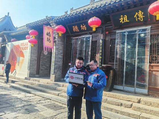 技術(shù)人員在忻州古城測試網(wǎng)絡(luò)運(yùn)行情況