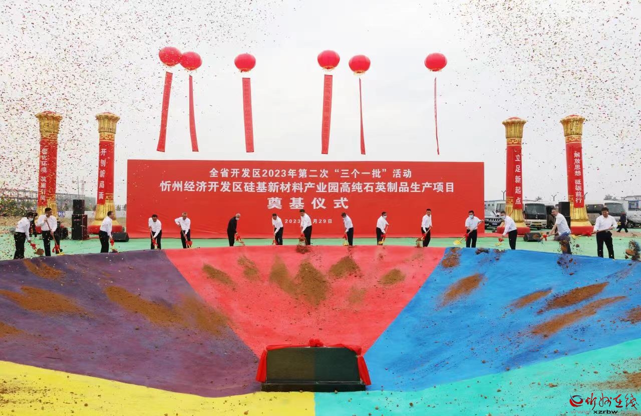 與省主會(huì)場同步,李建國主持舉行了忻州市“簽約一批”代表項(xiàng)目集中簽約活動(dòng)。忻州經(jīng)濟(jì)開發(fā)區(qū)特種硅基新材料智能生產(chǎn)項(xiàng)目、原平經(jīng)濟(jì)技術(shù)開發(fā)區(qū)污廢水處理環(huán)保成套設(shè)備及配套產(chǎn)品生產(chǎn)項(xiàng)目、繁峙經(jīng)濟(jì)技術(shù)開發(fā)區(qū)15萬千瓦光伏發(fā)電項(xiàng)目、定襄經(jīng)濟(jì)技術(shù)開發(fā)區(qū)無憂(山西)數(shù)字金融產(chǎn)業(yè)園項(xiàng)目、岢嵐經(jīng)濟(jì)技術(shù)開發(fā)區(qū)宇航固體動(dòng)力岢嵐試驗(yàn)中心項(xiàng)目、靜樂現(xiàn)代農(nóng)業(yè)產(chǎn)業(yè)示范區(qū)羊肚菌研發(fā)種植推廣實(shí)驗(yàn)基地建設(shè)項(xiàng)目、神池現(xiàn)代農(nóng)業(yè)產(chǎn)業(yè)示范區(qū)太平莊生態(tài)養(yǎng)殖示范基地建設(shè)項(xiàng)目、五臺(tái)現(xiàn)代農(nóng)業(yè)產(chǎn)業(yè)示范區(qū)植物蛋白飲品及休閑食品生產(chǎn)項(xiàng)目、五寨現(xiàn)代農(nóng)業(yè)產(chǎn)業(yè)示范區(qū)大辛莊繁育場項(xiàng)目、偏關(guān)生態(tài)文化旅游示范區(qū)生態(tài)農(nóng)業(yè)建設(shè)項(xiàng)目等10個(gè)代表項(xiàng)目分兩批進(jìn)行現(xiàn)場簽約。簽約儀式結(jié)束后,與會(huì)人員赴“開工一批”代表項(xiàng)目——“硅基新材料產(chǎn)業(yè)園高純石英制品生產(chǎn)建設(shè)項(xiàng)目”現(xiàn)場培土奠基。隨后赴重點(diǎn)建設(shè)項(xiàng)目——“10GW智能光伏電池生產(chǎn)基地項(xiàng)目”實(shí)地觀摩,該項(xiàng)目聚焦“奮戰(zhàn)7.30、8.30、9.28”目標(biāo),分階段確保項(xiàng)目竣工投產(chǎn)。