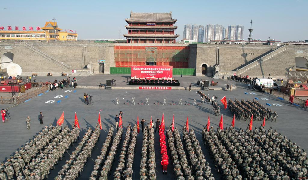 忻府區(qū)四大班子領(lǐng)導及18個鄉(xiāng)鎮(zhèn)(街道)應(yīng)急綜合隊伍、區(qū)應(yīng)急救援大隊、區(qū)人武部民兵應(yīng)急連等共計千余人參加活動。(張曄)
