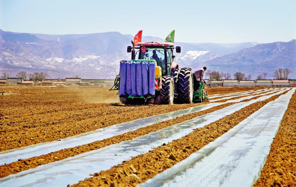 4月10日,五寨縣現(xiàn)代加工型馬鈴薯產(chǎn)業(yè)示范園的萬(wàn)畝馬鈴薯輪作玉米播種工作全面啟動(dòng),預(yù)計(jì)今年輪作面積達(dá)2萬(wàn)畝以上。為加快輪作進(jìn)度,園區(qū)引進(jìn)中國(guó)神農(nóng)農(nóng)業(yè)機(jī)械發(fā)展(山西)集團(tuán)有限公司大型玉米綜合播種機(jī),該播種機(jī)單次投種、投肥,鋪膜、布管面積可達(dá)100畝以上,預(yù)計(jì)全部輪作玉米播種工作將在5月初完成。圖為大型玉米綜合播種機(jī)正在播種。 (張向榮 攝)