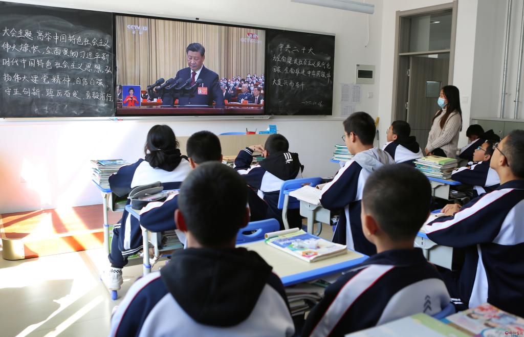 忻州市第一中學(xué)的校園處處洋溢著歡快、自豪的氣氛,師生們通過不同渠道,共同見證著這一歷史時刻??赐曛辈ズ螅處焺⒔蚍猹q未盡。她說:“前不久,我們剛剛迎來建校120周年華誕,如今,又喜迎黨的二十大勝利召開,心中的歡欣鼓舞、自豪之情真是無以言表。作為一名人民教師,要始終牢記為黨育人、為國育才的光榮使命,堅決執(zhí)行黨中央的教育方針政策,培根鑄魂,啟智潤心,培養(yǎng)德智體美勞全面發(fā)展的社會主義建設(shè)者和接班人。”