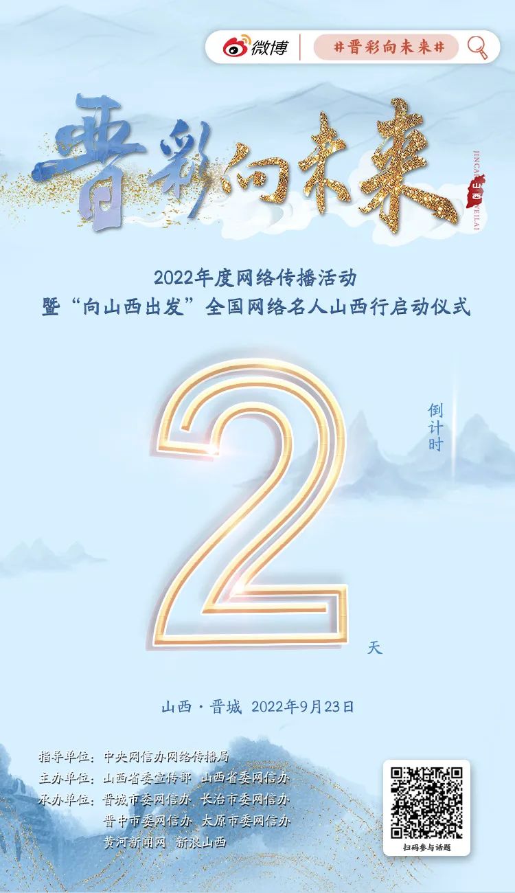 “晉彩向未來”年度網(wǎng)絡傳播活動,是“非凡十年?奮‘晉’未來”系列網(wǎng)絡主題宣傳活動之一?;顒庸卜譃槎桃曨l征集活動、全國網(wǎng)絡名人山西行、優(yōu)秀作品展播三階段推進,目前短視頻征集已在線上預熱開啟?!皶x彩向未來”2022年度網(wǎng)絡傳播活動暨“向山西出發(fā)”全國網(wǎng)絡名人山西行活動將于9月23日正式啟動。