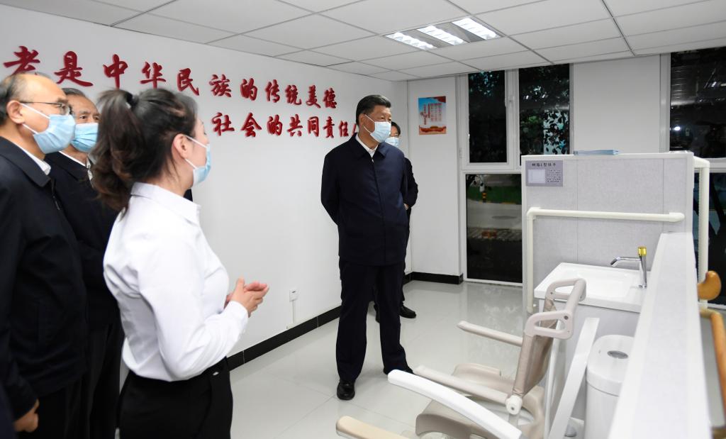2021年8月24日,習近平總書記在河北省承德市濱河社區(qū)居家養(yǎng)老服務(wù)中心察看適老化改造等項目。新華社記者 李學(xué)仁 攝