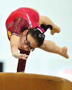 8月15日,體操運(yùn)動(dòng)員在比賽中展示著力與美。本報(bào)記者劉通 本報(bào)通訊員王中勛攝