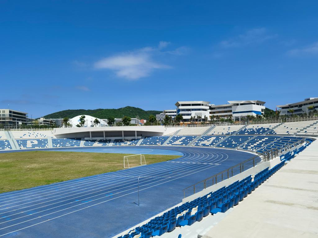 6月27日在海南陵水拍攝的國際教育創(chuàng)新試驗(yàn)區(qū)園區(qū)內(nèi)的運(yùn)動場。新華社記者 劉勇貞 攝