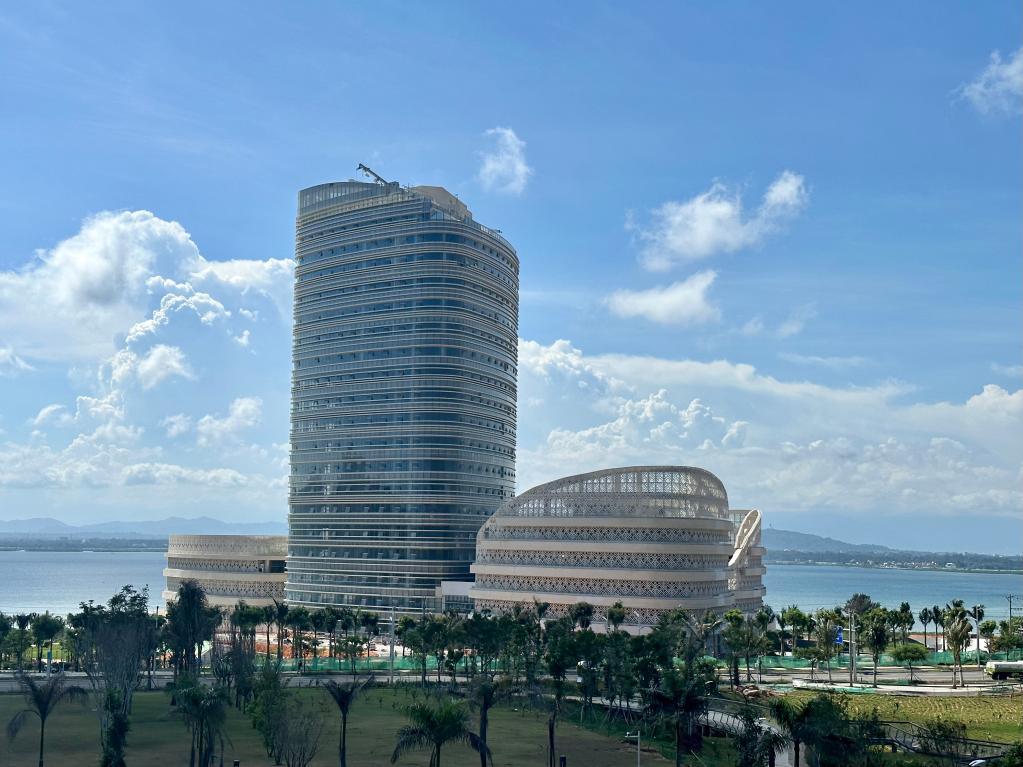 6月27日在海南陵水拍攝的國際教育創(chuàng)新試驗(yàn)區(qū)園區(qū)內(nèi)的中國傳媒大學(xué)考文垂學(xué)院教學(xué)樓。新華社記者 劉勇貞 攝