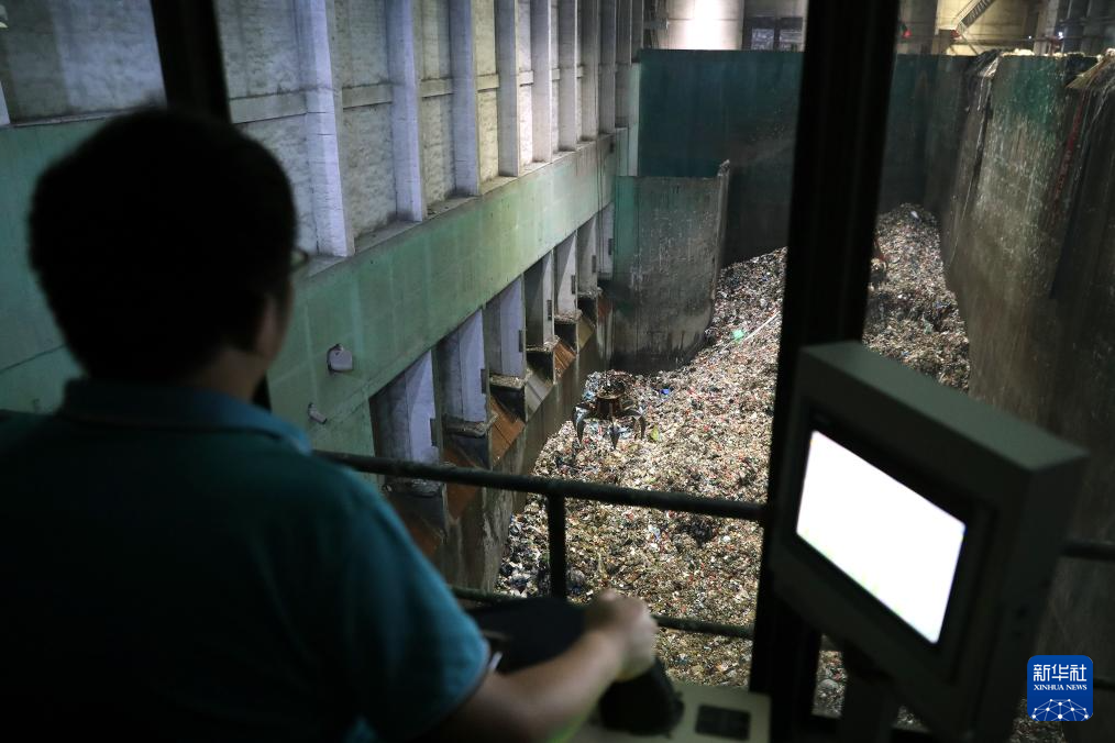 6月29日,在江西南昌固廢處理循環(huán)經(jīng)濟產(chǎn)業(yè)園,生活垃圾焚燒發(fā)電項目的工作人員通過操控垃圾吊移動垃圾。新華社記者 杜瀟逸 攝