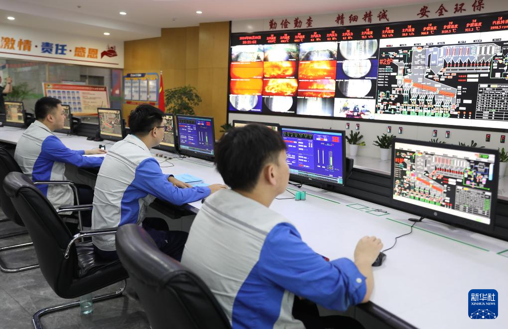 6月29日,在江西南昌固廢處理循環(huán)經(jīng)濟產(chǎn)業(yè)園,生活垃圾焚燒發(fā)電項目的工作人員在中控室監(jiān)控設(shè)備運轉(zhuǎn)情況。新華社記者 杜瀟逸 攝