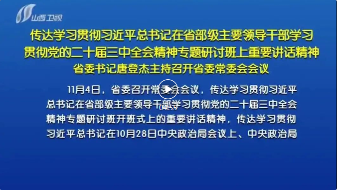 山西日報報道 11月4日,省委召開常委會會議,傳達學習貫徹習近平總書記在省部級主要領導干部學習貫徹黨的二十屆三中全會精神專題研討班開班式上的重要講話精神,傳達學習貫徹習近平總書記在10月28日中央政治局會議上、中央政治局第十七次集體學習時的重要講話精神和對民政工作的重要指示精神,傳達第十五次全國民政會議精神,研究我省貫徹落實意見。省委書記唐登杰主持會議并講話。