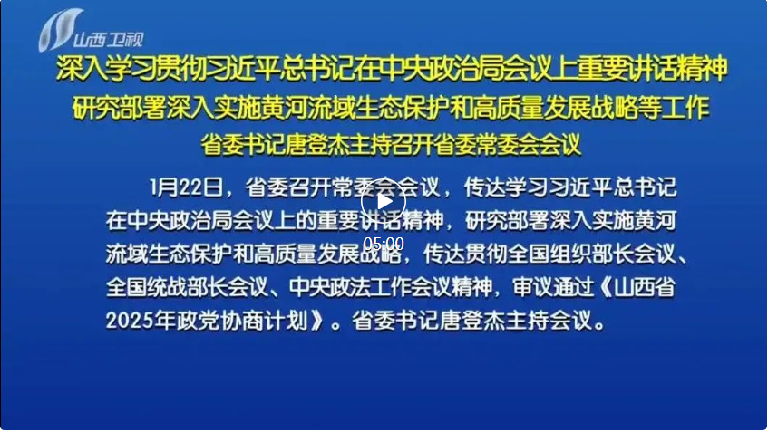山西日?qǐng)?bào)報(bào)道 1月22日,省委召開常委會(huì)會(huì)議,傳達(dá)學(xué)習(xí)習(xí)近平總書記在中央政治局會(huì)議上的重要講話精神,研究部署深入實(shí)施黃河流域生態(tài)保護(hù)和高質(zhì)量發(fā)展戰(zhàn)略,傳達(dá)貫徹全國組織部長會(huì)議、全國統(tǒng)戰(zhàn)部長會(huì)議、中央政法工作會(huì)議精神,審議通過《山西省2025年政黨協(xié)商計(jì)劃》。省委書記唐登杰主持會(huì)議。