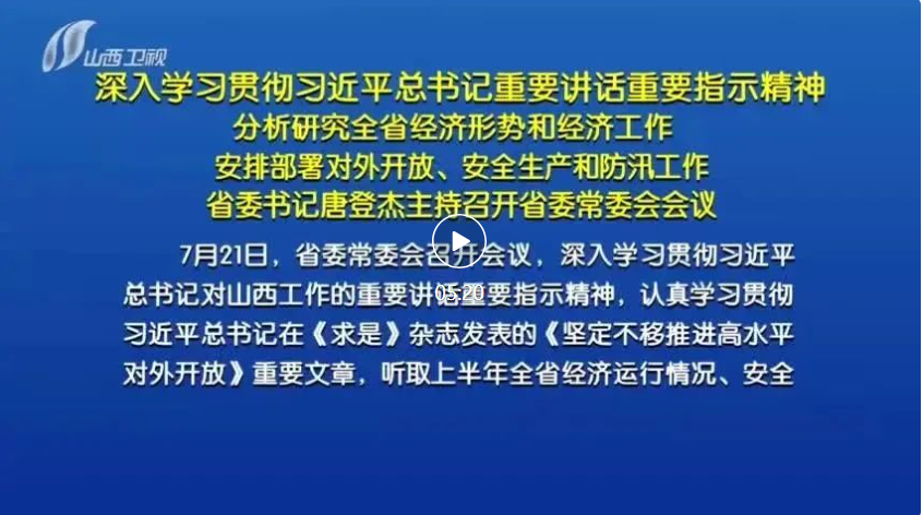 7月21日,省委常委會(huì)召開會(huì)議,深入學(xué)習(xí)貫徹習(xí)近平總書記對(duì)山西工作的重要講話重要指示精神,認(rèn)真學(xué)習(xí)貫徹習(xí)近平總書記在《求是》雜志發(fā)表的《堅(jiān)定不移推進(jìn)高水平對(duì)外開放》重要文章,聽取上半年全省經(jīng)濟(jì)運(yùn)行情況、安全生產(chǎn)形勢和防汛工作情況匯報(bào),研究部署下一步工作,審議通過《關(guān)于嚴(yán)格落實(shí)“四水四定”的實(shí)施方案》。省委書記唐登杰主持會(huì)議。