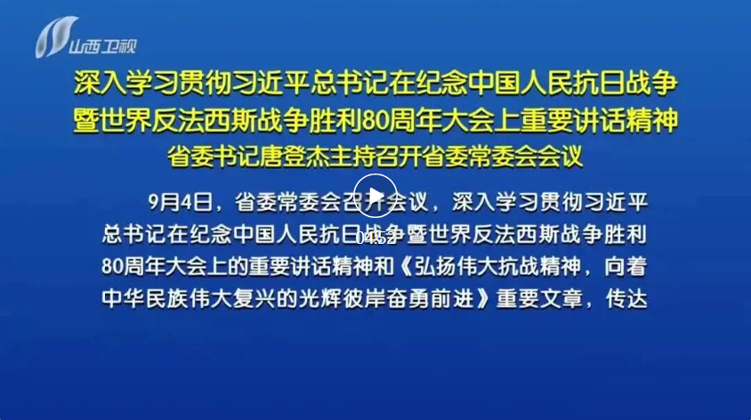 會(huì)議指出,習(xí)近平總書記在紀(jì)念中國人民抗日戰(zhàn)爭暨世界反法西斯戰(zhàn)爭勝利80周年大會(huì)上的重要講話,全面回顧了中國人民抗日戰(zhàn)爭的偉大歷程,深刻闡釋了抗戰(zhàn)勝利的重大意義,再次宣示了中國人民“銘記歷史、緬懷先烈、珍愛和平、開創(chuàng)未來”的堅(jiān)定立場,具有很強(qiáng)的政治性、思想性、戰(zhàn)略性和指導(dǎo)性,必將激揚(yáng)起為實(shí)現(xiàn)中華民族偉大復(fù)興、推動(dòng)構(gòu)建人類命運(yùn)共同體而奮斗的磅礴偉力。全省上下要堅(jiān)持以習(xí)近平新時(shí)代中國特色社會(huì)主義思想為指導(dǎo),深入學(xué)習(xí)貫徹習(xí)近平總書記重要講話精神,深刻領(lǐng)悟“兩個(gè)確立”的決定性意義,堅(jiān)決做到“兩個(gè)維護(hù)”,堅(jiān)定不移走中國特色社會(huì)主義道路,傳承和弘揚(yáng)偉大抗戰(zhàn)精神,踔厲奮發(fā)、勇毅前行,努力在推動(dòng)資源型經(jīng)濟(jì)轉(zhuǎn)型發(fā)展上邁出新步伐,奮力譜寫三晉大地推進(jìn)中國式現(xiàn)代化新篇章。要充分發(fā)揮我省紅色文化資源豐富的優(yōu)勢,做好抗戰(zhàn)史研究闡釋工作,更加注重用黨的優(yōu)良革命傳統(tǒng)和作風(fēng)教育人,教育引導(dǎo)全省廣大黨員干部群眾堅(jiān)定歷史自信、增強(qiáng)歷史主動(dòng),賡續(xù)紅色血脈、激發(fā)愛國熱情,把偉大抗戰(zhàn)精神一代代傳下去。要進(jìn)一步增強(qiáng)牢記囑托、感恩奮進(jìn)、頑強(qiáng)拼搏、真抓實(shí)干的斗志,堅(jiān)定扛牢國家資源型經(jīng)濟(jì)轉(zhuǎn)型綜改試驗(yàn)區(qū)建設(shè)、深化能源革命、打造內(nèi)陸地區(qū)對外開放新高地、促進(jìn)中部地區(qū)加快崛起、推動(dòng)黃河流域生態(tài)保護(hù)和高質(zhì)量發(fā)展等重大使命任務(wù),扎實(shí)推動(dòng)高質(zhì)量發(fā)展,不斷深化全方位轉(zhuǎn)型,統(tǒng)籌好發(fā)展和安全,努力完成全年經(jīng)濟(jì)社會(huì)發(fā)展目標(biāo)任務(wù),確?!笆奈濉表樌展?、“十五五”良好開局。要堅(jiān)持黨的全面領(lǐng)導(dǎo),堅(jiān)定扛牢管黨治黨政治責(zé)任,不斷提高各級黨組織的政治領(lǐng)導(dǎo)力、思想引領(lǐng)力、群眾組織力、社會(huì)號(hào)召力,以永遠(yuǎn)在路上的堅(jiān)韌和執(zhí)著推進(jìn)全面從嚴(yán)治黨,有力引領(lǐng)保障全省高質(zhì)量發(fā)展和現(xiàn)代化建設(shè)。