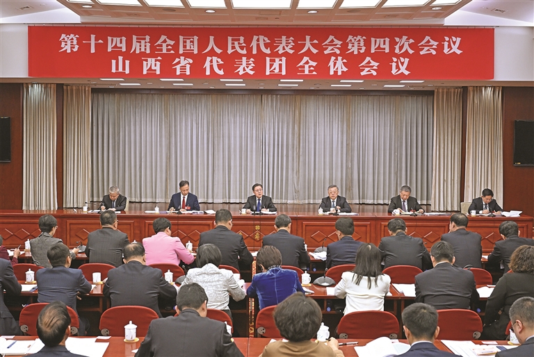 3月5日下午,十四屆全國人大四次會議山西代表團舉行全體會議,審議李強總理作的政府工作報告。山西團代表、全國人大常委會副委員長、中華全國總工會主席王東明和代表們一起審議。