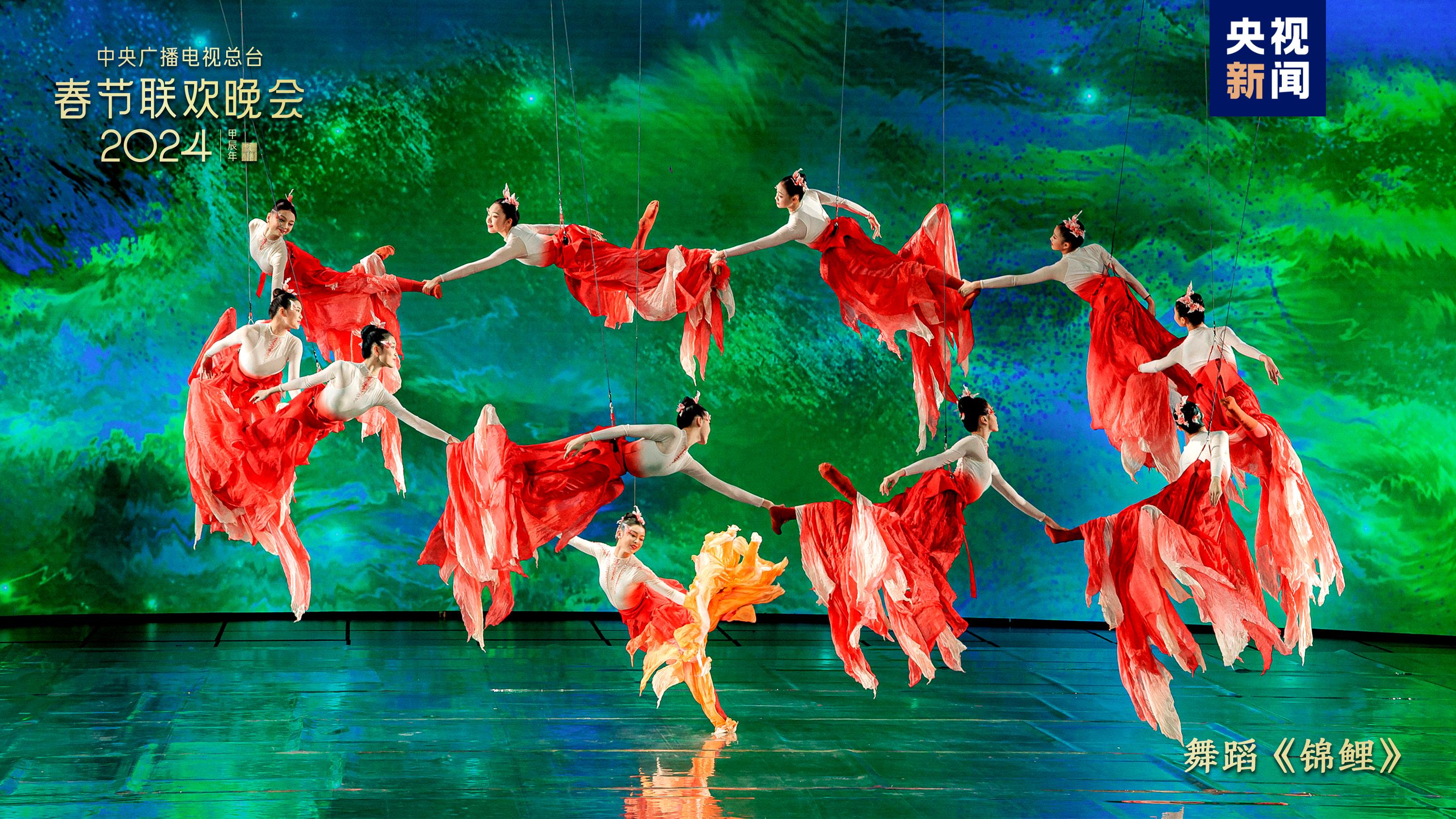 五彩紋樣燦若云霞,繪出錦繡中華。中國(guó)傳統(tǒng)紋樣創(chuàng)演秀《年錦》選取漢、唐、宋、明四個(gè)朝代富有代表性的紋樣,通過歌曲+虛擬合成技術(shù),織出一幅跨越千載的紋樣變遷圖卷。劉濤、劉詩(shī)詩(shī)、李沁、關(guān)曉彤身著傳統(tǒng)服飾,圖案繁盛、細(xì)節(jié)有序的華服之美隱藏著河清海晏、繁榮昌盛的美好祝福。舞蹈《錦鯉》融合AI、XR等技術(shù),舞者以飛天之姿化身水中錦鯉,點(diǎn)波流金,煥活舞臺(tái)上的一池春水,令人驚艷。