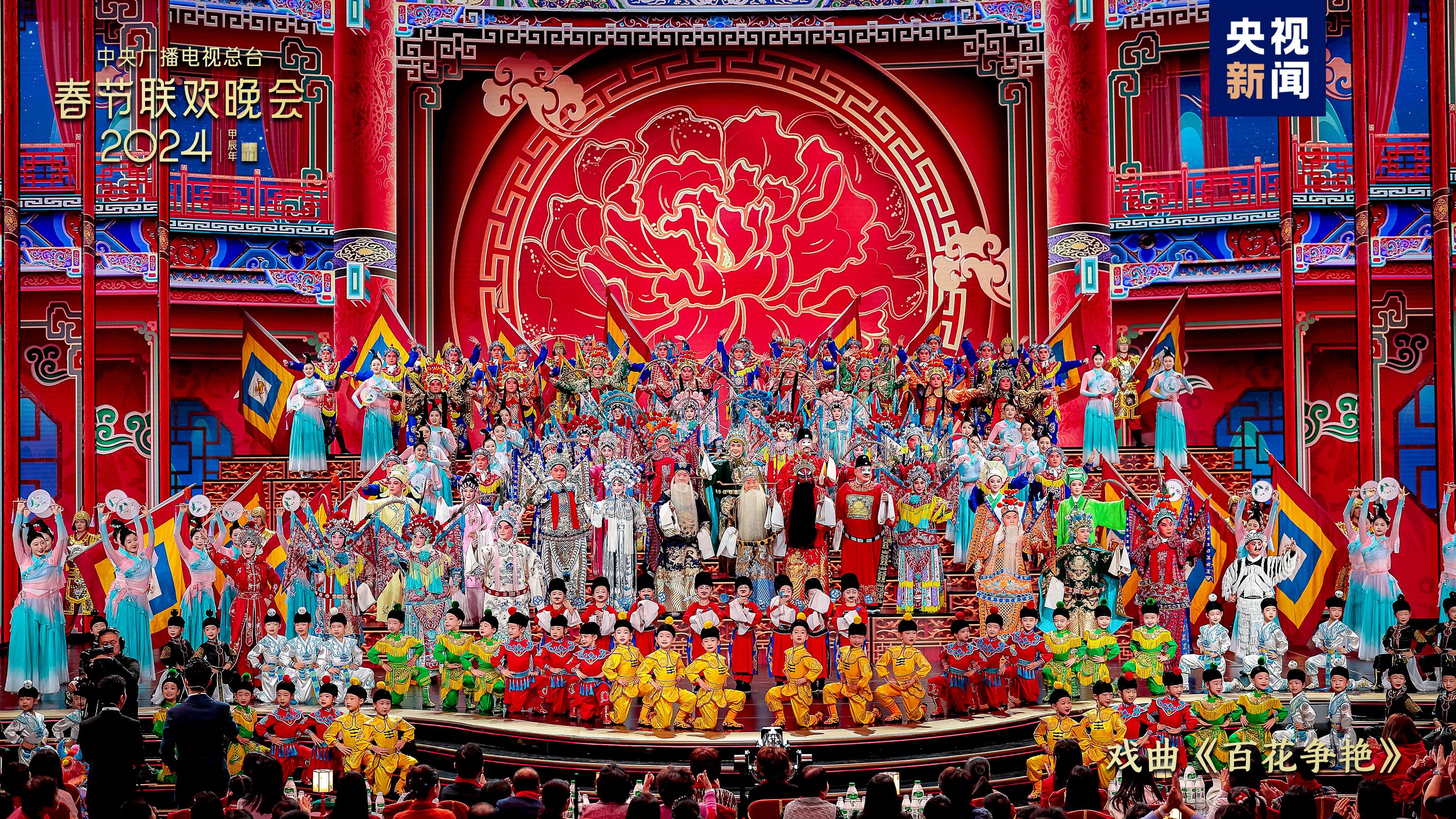 戲曲節(jié)目《百花爭(zhēng)艷》中,老少中青群英會(huì),演繹百萬金戈鐵馬、千年戀愛傳奇,國(guó)家級(jí)非物質(zhì)文化遺產(chǎn)潮劇首次在總臺(tái)春晚舞臺(tái)綻放華彩。雜技《躍龍門》結(jié)合競(jìng)技體育項(xiàng)目“蹦床”和雜技“浪橋飛人”,表現(xiàn)出奮勇向前、更上層樓的干勁闖勁。陜西西安分會(huì)場(chǎng)全民齊誦詩(shī)詞歌賦,恢宏大氣的《山河詩(shī)長(zhǎng)安》令人詩(shī)情澎湃、暢懷無限;多民族載歌載舞、共賀新春,新疆喀什分會(huì)場(chǎng)的《舞樂新疆》節(jié)奏歡快氣氛熱烈,展現(xiàn)石榴籽一樣緊緊抱在一起的各民族一家親。