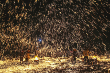 稷山縣打鐵花表演璀璨了夜空,綻放著節(jié)日的喜慶。