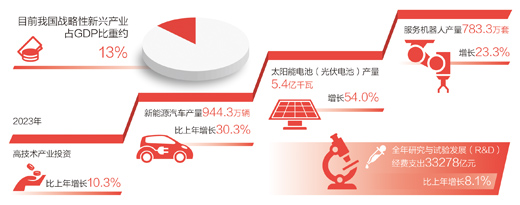 發(fā)展壯大戰(zhàn)略性新興產(chǎn)業(yè)?!皯?zhàn)略性新興產(chǎn)業(yè)具有創(chuàng)新活躍、技術密集等特點,為新質生產(chǎn)力發(fā)展壯大提供了巨大空間。”高文代表說,近年來,我國戰(zhàn)略性新興產(chǎn)業(yè)蓬勃發(fā)展,目前戰(zhàn)略性新興產(chǎn)業(yè)占GDP比重約13%。